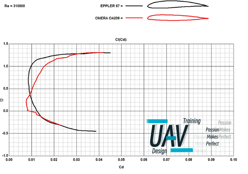As for polar curve maps, take this as an example, this is the comparison of 2 airfoils when Reynolds number is 310000.